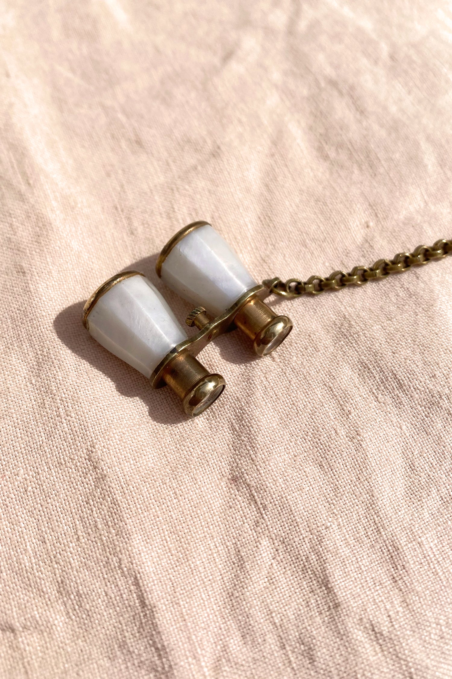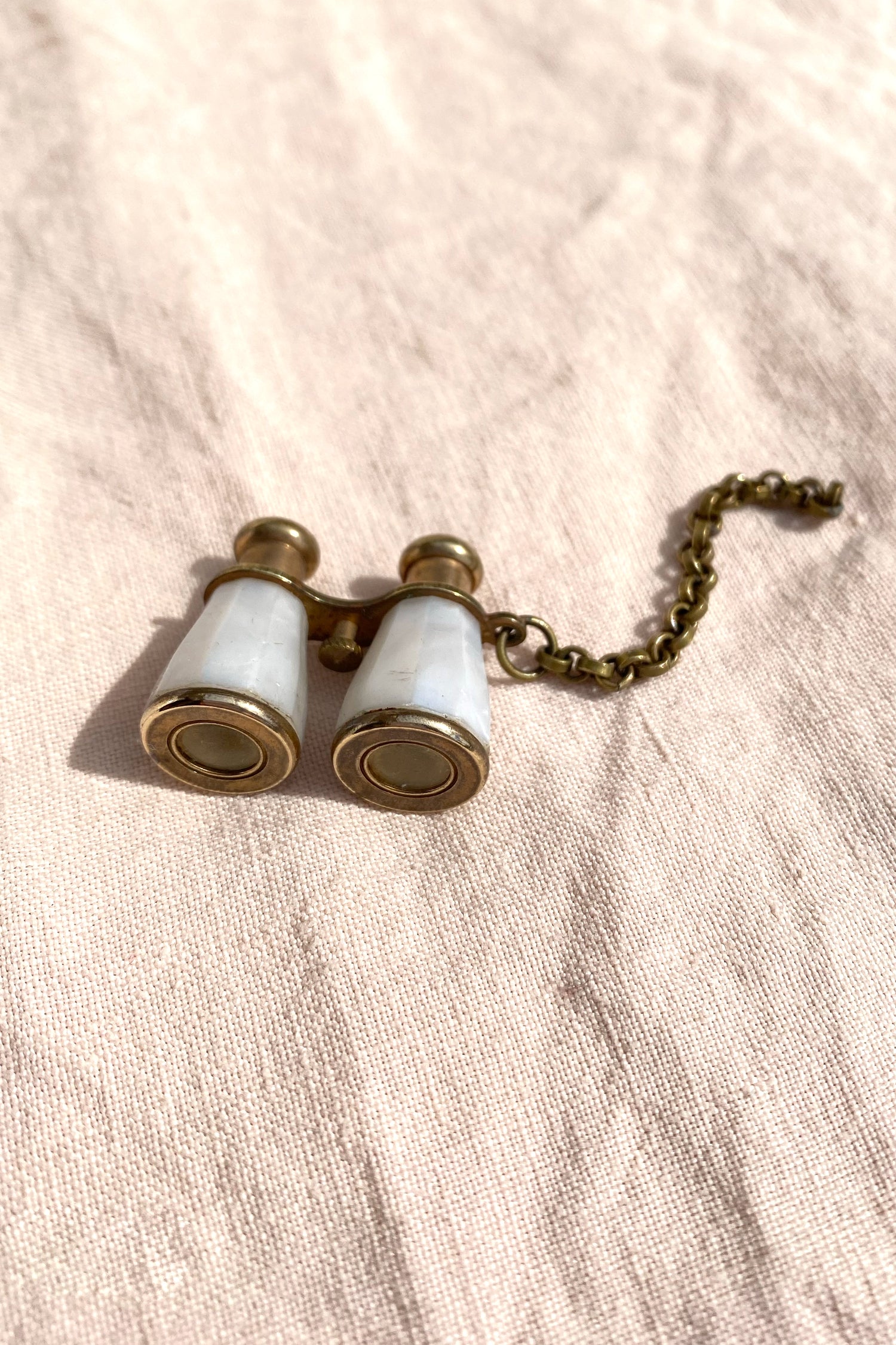 This miniature Stanhope binocular charm is a unique keepsake that dates to the mid-20th century. Looking through the lenses, you'll find micro-photographs of St. Peter’s Basilica and Pope Pius XII.