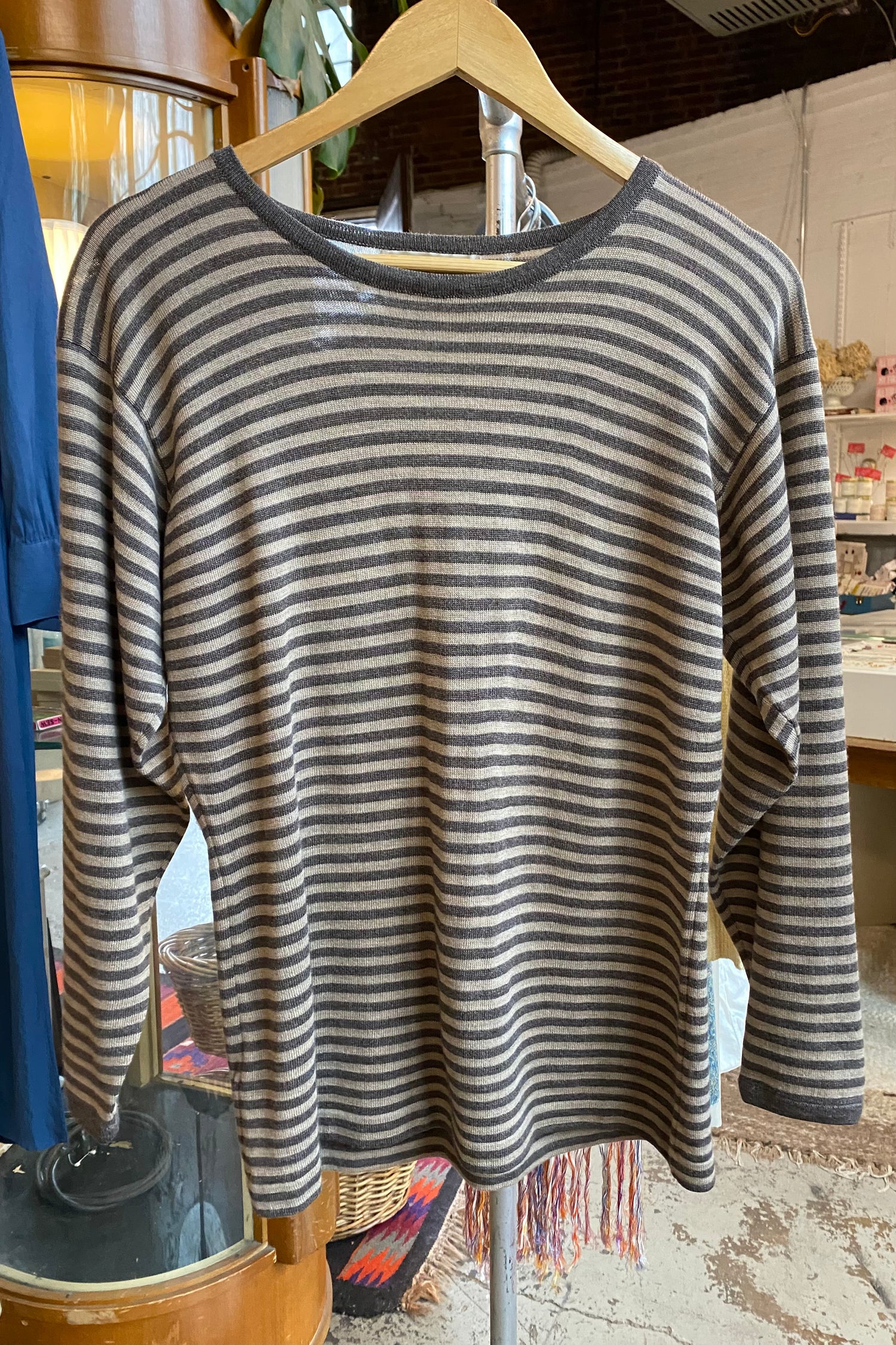 Geoffrey Beene New York stripe sweater. Super soft and cozy merino wool blend. Soft gray and light taupe stripe with tonal trim.