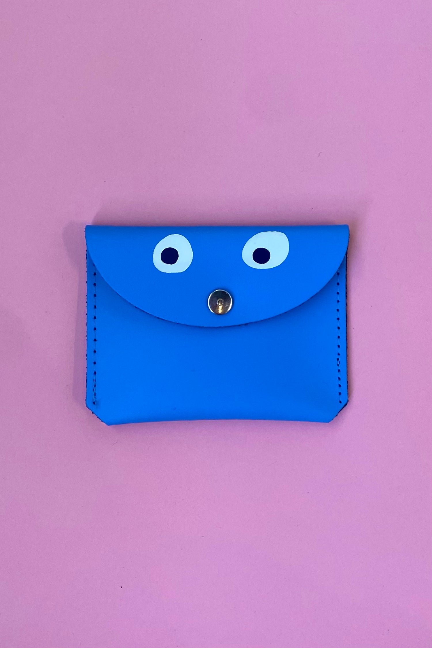 Teeny leather coin purse for your bits and bobs. Snap front closure. A cute pop of color, and googly eyes-- what could be better?